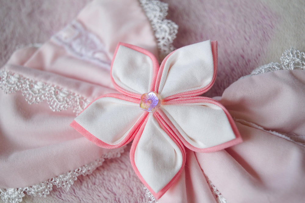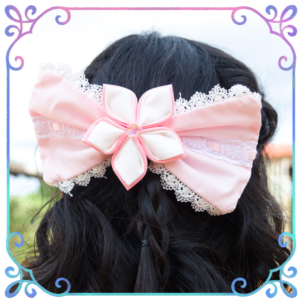 Soft pink bows, crowned with a delicate sakura flower. Sweet, sparkling, and just a little enchanted—perfect for magical crime-fighting duos, best frenemies, or sisters who fight for love and hope.